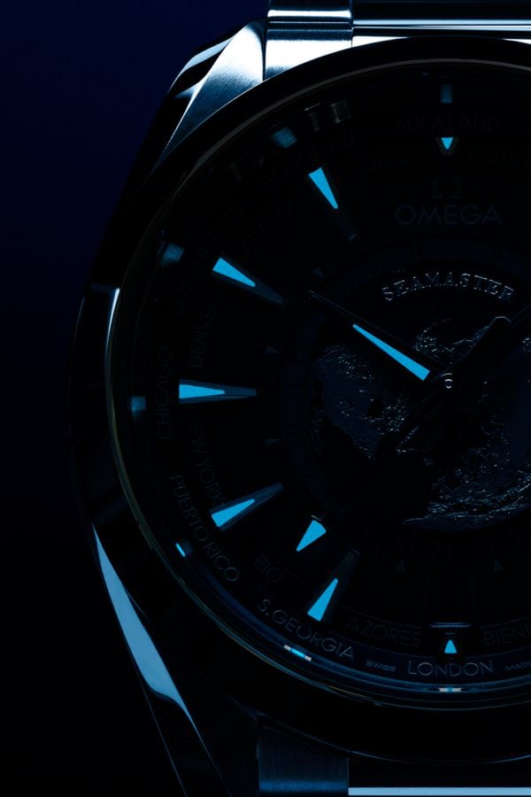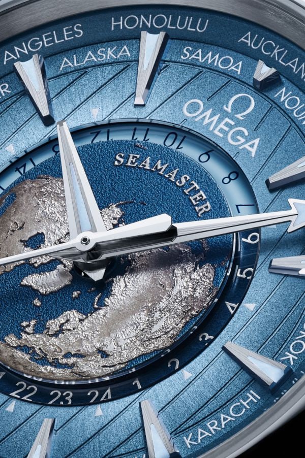 In line with Aqua Terra technology, the Worldtimer is equipped to keep time in an aquatic world, 150 meters below the waves. The driving force is the OMEGA Co-Axial Master Chronometer 8938.